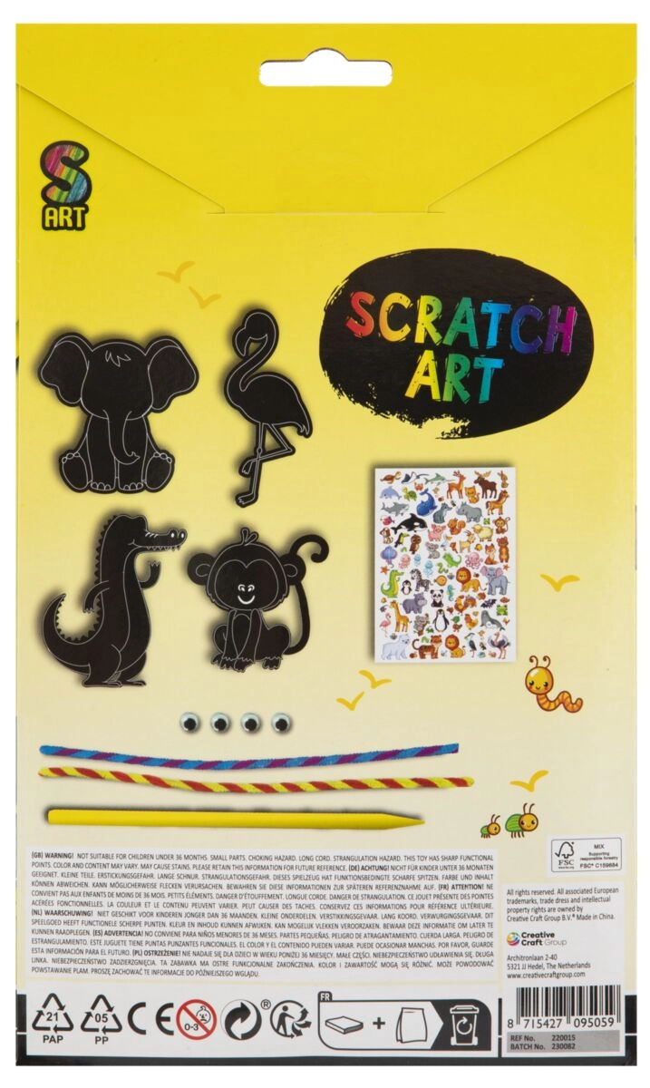 Gestalten Sie einzigartige, bunte Tierchen mit der Kratztechnik. Jede Form verbirgt einen farbenfrohen Hintergrund, der durch einfaches Herauskratzen von Mustern und Linien sichtbar wird. Mit den beiliegenden Aufklebern, Augen und dem Formdraht ergänzen Sie fröhliche Details und verleihen den Figuren einen individuellen Ausdruck.