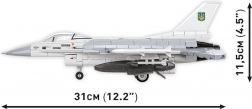 Die F-16 Fighting Falcon gehört zu den bekanntesten Mehrzweck-Jagdflugzeugen der Welt. Dieser COBI-Bausatz im Maßstab 1:48 bildet die Version AM in ukrainischer Lackierung originalgetreu ab. Alle Teile sind mit hochwertigen Tampondrucken versehen (ohne Aufkleber). Im Lieferumfang enthalten sind ein transparenter Ständer mit Informationsschild und eine detailliert bedruckte Figur eines ukrainischen Piloten mit Helm und Sauerstoffmaske.
