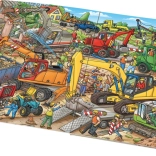 Große, farbenfrohe Szenen ziehen Kinder in die Welt der Bagger, Radlader und Krane hinein und fördern Neugier sowie Vorstellungskraft.
