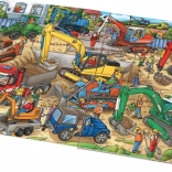 Dieses große Bilderbuch führt kleine Leser in die lebendige Welt der Baustelle, auf der verschiedene Baumaschinen arbeiten – vom roten Bagger mit Doppelbereifung über den grünen Radlader bis zum gelben Kettenbagger. Farbige und übersichtliche Szenen regen die Neugier an und fördern die Feinmotorik und das logische Denken.