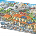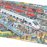 Dieses große Bilderbuch begeistert alle kleinen Zugfans. Auf reichhaltigen, sorgfältig ausgearbeiteten Illustrationen blicken Kinder der Eisenbahnwelt ganz nah über die Schulter – von Lokomotiven und Waggons über geschäftige Bahnhöfe bis hin zu ruhigen Landstationen. Jede Seite ist voller kleiner Details und Figuren, die Kinder suchen können, um gemeinsam deren Geschichten zu erleben.