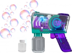 Eine unterhaltsame und leicht zu bedienende Seifenblasenpistole in lila Farbe mit Lichteffekten begeistert jedes Kind. Dank der kompakten Abmessungen ideal für Spielplatz, Urlaub und Spaziergänge. Inklusive Flasche mit Lösung, die direkt aufgeschraubt wird – kein Verschütten, sauberer und bequemer Spaß. Hergestellt aus robusten und ungiftigen Materialien, mit CE-Zertifizierung und EN71-Norm.