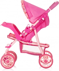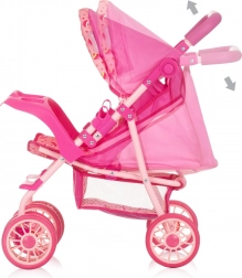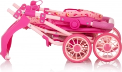 Der moderne Puppenwagen im verspielten Rosé-Design bietet Kindern ein realistisches Eltern-Rollenspiel. Dank der großen, doppelt ausgeführten Räder fährt er ruhig und stabil, das verstellbare Verdeck schützt die Puppe und die Rückenlehne lässt sich leicht vom Sitzen bis zur Liegeposition verstellen. Der höhenverstellbare Schieber passt sich der Größe des Kindes an und ermöglicht eine bequeme Handhabung.