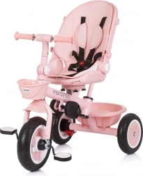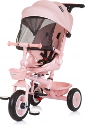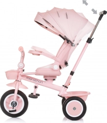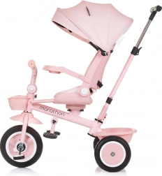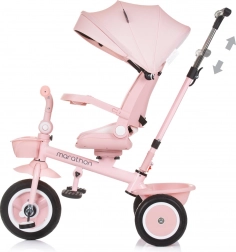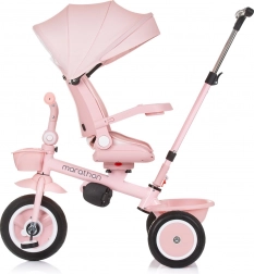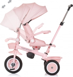 Das Dreirad mit Verdeck Marathon 2v1 Flamingo ist so konzipiert, dass es maximalen Komfort und Sicherheit sowohl für Kinder als auch für Eltern bietet. Zuerst können Eltern das Dreirad mit dem bequemen Griff aus Kunstleder steuern, und sobald das Kind alt genug ist, kann es selbstständig fahren.