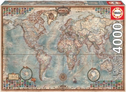 Educa Puzzle Politische Weltkarte ist eine Herausforderung für alle Liebhaber von Geografie und Puzzles. Dieses umfangreiche Puzzle mit 4000 Teilen nimmt Sie mit auf eine Reise rund um die Welt, zeigt detailliert gezeichnete Staatsgrenzen und offenbart die Schönheit unseres Planeten.