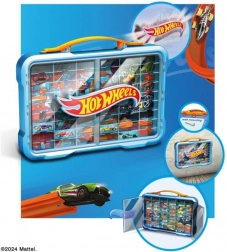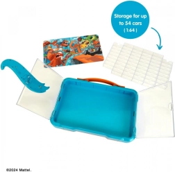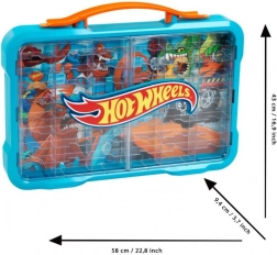 Stilvolles Köfferchen/Garage für eine Sammlung von Modellautos im Maßstab 1:64 mit transparenten Türen, Kapazität für bis zu 54 Fahrzeuge und einem beleuchteten HOT WHEELS Logo. Bietet ein praktisches Tragehenkel sowie die Möglichkeit zur Wandmontage, sodass Ihre Lieblinge stets sicher aufbewahrt und schön präsentiert sind.