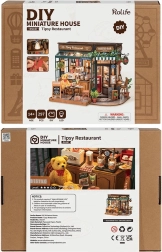 Die Miniatur des Tipsy Restaurant Hauses bietet Teile aus Holzpuzzle, die ohne Kleber sicher ineinander greifen. Erstellen Sie eine einzigartige Dekoration, die jedem Interieur Charme verleiht.