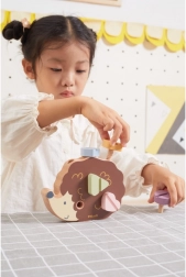 Der hölzerne Igel ermöglicht es Kindern, die Feinmotorik mit Schrauben in verschiedenen Farben und Formen zu üben.