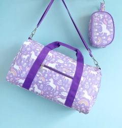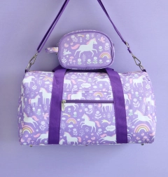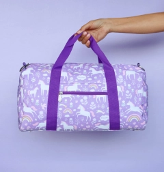 Kinderreisetasche, entworfen für maximalen Komfort und Funktionalität. Sie ist mit zwei Handgriffen und einem abnehmbaren Schultergurt ausgestattet, was bequemes Tragen sichert. Die geräumige Hauptkammer wird durch eine weitere Tasche, zwei Seitentaschen und ein vorderes Reißverschlussfach ergänzt, die viel Platz für alles bieten, was Ihr Kind braucht. Die Tasche ist ideal sowohl für Sportvereine als auch für Familienausflüge und kann auch als Handgepäck im Flugzeug verwendet werden. Das Material der Tasche ist leicht, robust und mit einem fröhlichen Einhorn- und Regenbogenmotiv versehen.