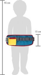 Der Textilgürtel mit robuster Schnalle und D-Ring lässt sich leicht an die Statur des Kindes anpassen. Schlaufen und eine Tasche halten die Werkzeuge auch in Bewegung sicher an ihrem Platz.
