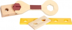 Hammer, Schraubenschlüssel, Schraubendreher, Zange, Säge, Wasserwaage, Winkel und Zollstock fördern handwerkliche Fähigkeiten und den sicheren Umgang mit Werkzeugen.