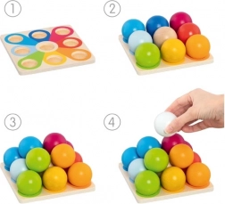 Holzpyramide aus bunten Kugeln