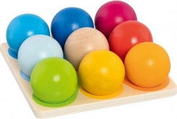 Spielzeug für kleine Entdecker! Mit vierzehn bunten Kugeln und einer Basis üben Kinder die Farbenerkennung, motorische Fähigkeiten und Geduld. Die Kugeln können sortiert, gestapelt und gerollt werden, was ihre Fantasie anregt.