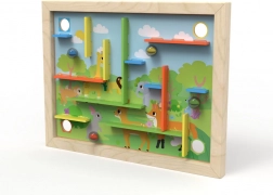 Dieses vom Spieler entworfene Labyrinth ist ein unterhaltsames und entwicklungsförderndes Werkzeug für Kinder. Enthält 22 Teile, die in verschiedenen Öffnungen auf der Spielplatte entweder nach Farbvorgaben oder nach eigenen Vorstellungen platziert werden können.