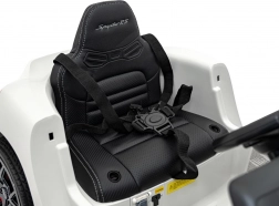 Ein Sitz aus Kunstleder mit Sicherheitsgurten, leise EVA-Räder sowie LED-Lichter vorne und hinten sorgen für ein authentisches und bequemes Fahrerlebnis.