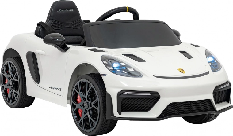 Kleiner Sportwagen mit großem Charakter. Dieses elektrische Fahrzeug imitiert originalgetreu das Design des Porsche 718 Spyder RS, einschließlich Scheinwerfern, Rädern und Emblemen. Es bietet sanftes Anfahren, Vorwärts- und Rückwärtsfahrt sowie Federung an beiden Achsen für Komfort auf unterschiedlichen Untergründen. Für Sicherheit sorgen Gurte und die Fernsteuerung mit Notstopp.