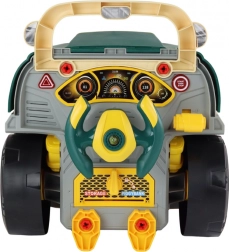 Diese Kindermontage-Werkstatt in Form eines grünen Lkw verbindet Spielen und Lernen in einem. Kinder können die Räder abschrauben, die Motorhaube öffnen und den Motor erkunden – dabei trainieren sie ihre Handkoordination und Geduld. Das interaktive Armaturenbrett mit Lenkrad, Hupe, Start/Stop-Taste, Warntaste und „Gang“-Schalter liefert realistische Fahrerlebnisse.