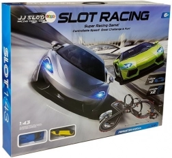 Diese riesige Slotcar-Rennbahn begeistert alle Speed-Fans. Dank zwei Loopings, dynamischem Layout und engen Kurven ist die Fahrt stets spannend. Die Autos im Maßstab 1:43 verfügen über vordere LED-Scheinwerfer, wodurch Rennen auch bei geringer Beleuchtung großartig sind.