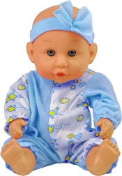 Baby-Puppe blau mit Töpfchen und Fläschchen 24 cm