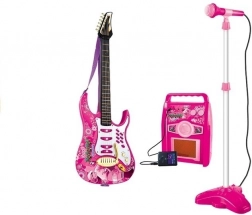 Diese elektrische Gitarre ist für Kinder konzipiert, die Musik lieben und Rockstars werden möchten. Dank ihrer Ausstattung und den mitgelieferten Komponenten wie Mikrofon, Verstärker und verstellbarem Stativ ist sie bereit für musikalische Auftritte.