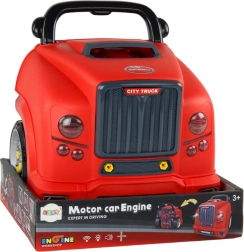 Der LKW dient als mobiles Kinderwerkstatt-Set mit schraubbaren Teilen.