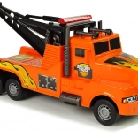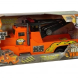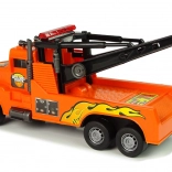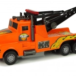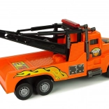 Starten Sie den Rettungseinsatz mit dem orangefarbenen Kunststoff-Abschleppwagen mit stylischen Flammen. Der drehbare Kran, das ausziehbare Seil und die Handwinde ermöglichen es, andere Spielzeuge mühelos „abzuschleppen“ und an einen sicheren Ort zu bringen. Der Rückzugantrieb sorgt für Tempo und jede Menge Spielspaß.