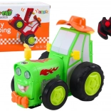 Entdecken Sie den springenden Traktor mit Fernsteuerung, der mit fröhlichem Design, Lichteffekten und Musik begeistert. Dank der intuitiven Fernbedienung haben Kinder die volle Kontrolle – nach vorn, hinten und zur Seite – und können eine spezielle Akrobatik mit geöffneter Motorhaube auslösen, bei der der Traktor auf zwei Rädern fährt.