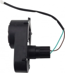Dank des integrierten Getriebes ermöglicht er eine präzise Geschwindigkeits- und Richtungssteuerung, ideal für Anwendungen, die sanftes Anfahren und feine Regelung erfordern. Montagepunkte erlauben die einfache Befestigung am Chassis oder Rahmen, und das Schutzgehäuse erhöht die Betriebssicherheit.