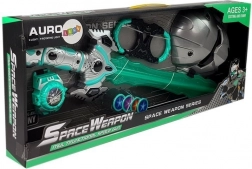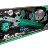 Das Lichtschwert wird mit 3 x 1,5 V AA-Batterien betrieben (nicht im Set enthalten). Alle Teile des Weltraum-Sets bestehen aus hochwertigem Kunststoff. Das Spielzeug verfügt über das CE-Zertifikat und ist in einem großen Karton mit Weltraummotiv und einem Roboterbild verpackt – ein perfektes Geschenk für Jungen.