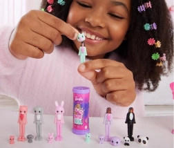 Die Mini-Puppen BARBIE Cutie Reveal bieten Spaß am Enthüllen – nimm die Kapuze des Tierkostüms ab und entdecke ein einzigartiges Gesicht, Haare und Style. Jede Figur hat eine bewegliche Taille und kann auf einem Herz-förmigen Standfuß präsentiert werden. Inklusive Mini-Tier, mit dem Kinder eigene Geschichten erfinden können.