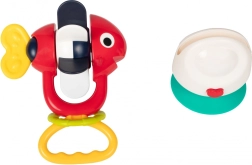 Kontrastreiche Farben fördern die visuelle Wahrnehmung, rasselnde Perlen stimulieren das Gehör und ergonomische Formen laden zum Greifen ein. Glatte Kunststoffteile lassen sich leicht reinigen und die robuste Konstruktion ist für den täglichen Gebrauch konzipiert.