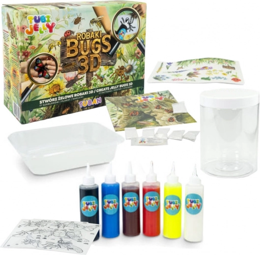 Entdecken Sie die Magie des Kreativseins mit Tubi Jelly Insekten 3D. Mit 17 Schablonen gestalten Sie einfache und kreative Gel-Insekten. Im Set finden Sie außerdem eine leere Folie zum Entwerfen eigener Insekten. Ein spezieller Aktivator verwandelt das flüssige Gel in eine feste Figur.