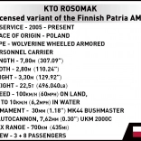 KTO Rosomak ist ein polnischer gepanzerter Radtransporter, basierend auf dem finnischen Patria AMV, der seit 2005 in Polen produziert wird. Es ist das Hauptkampffahrzeug der polnischen Landstreitkräfte, bekannt für seine hohe Mobilität und vielseitige Bewaffnung.