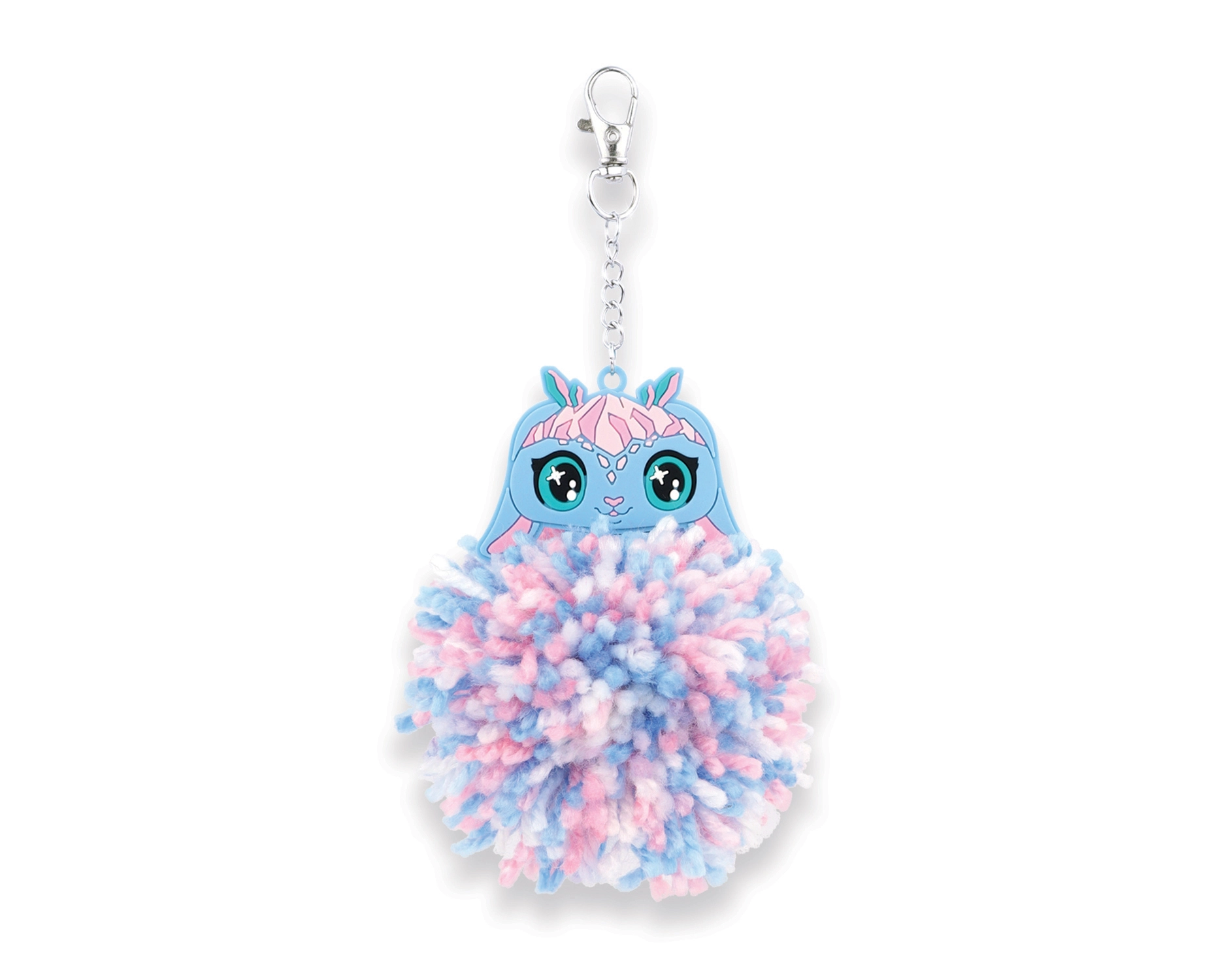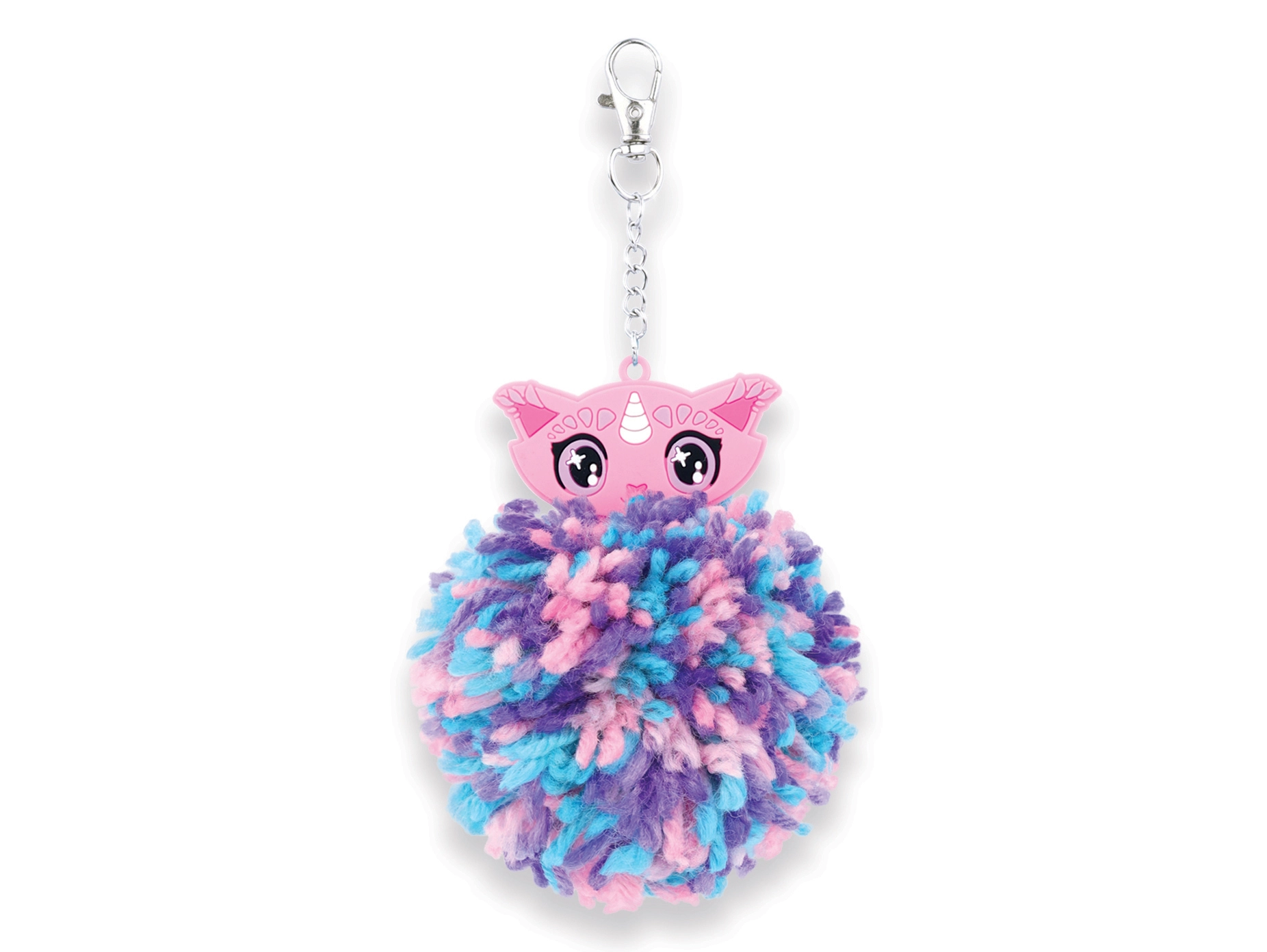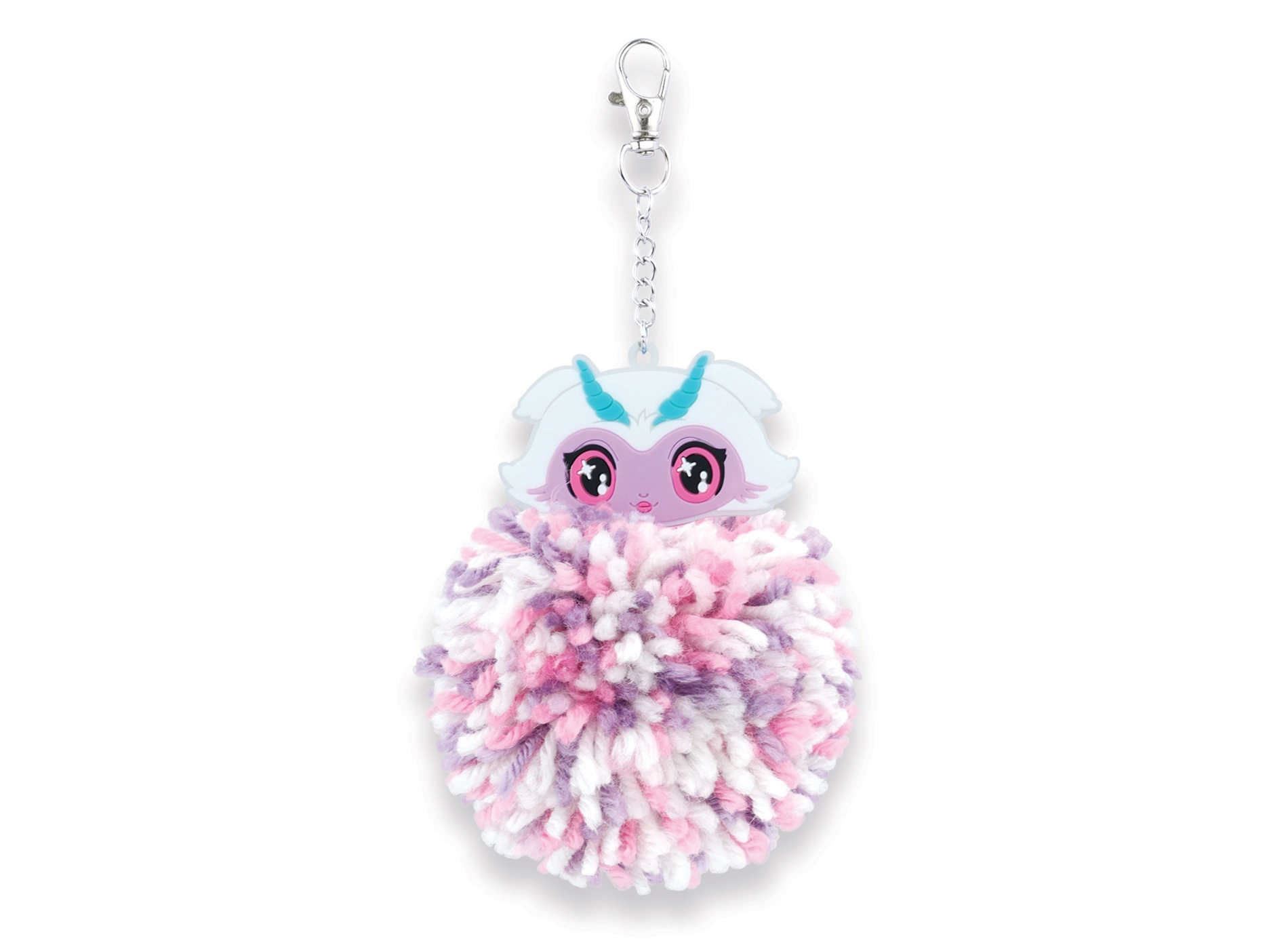 Fertige Pompons lassen sich mit dem Metallclip ganz einfach an Schlüssel, Taschen oder Rucksäcke befestigen. Das weiche Accessoire verleiht Ihren Sachen Farbe und einen individuellen Stil.