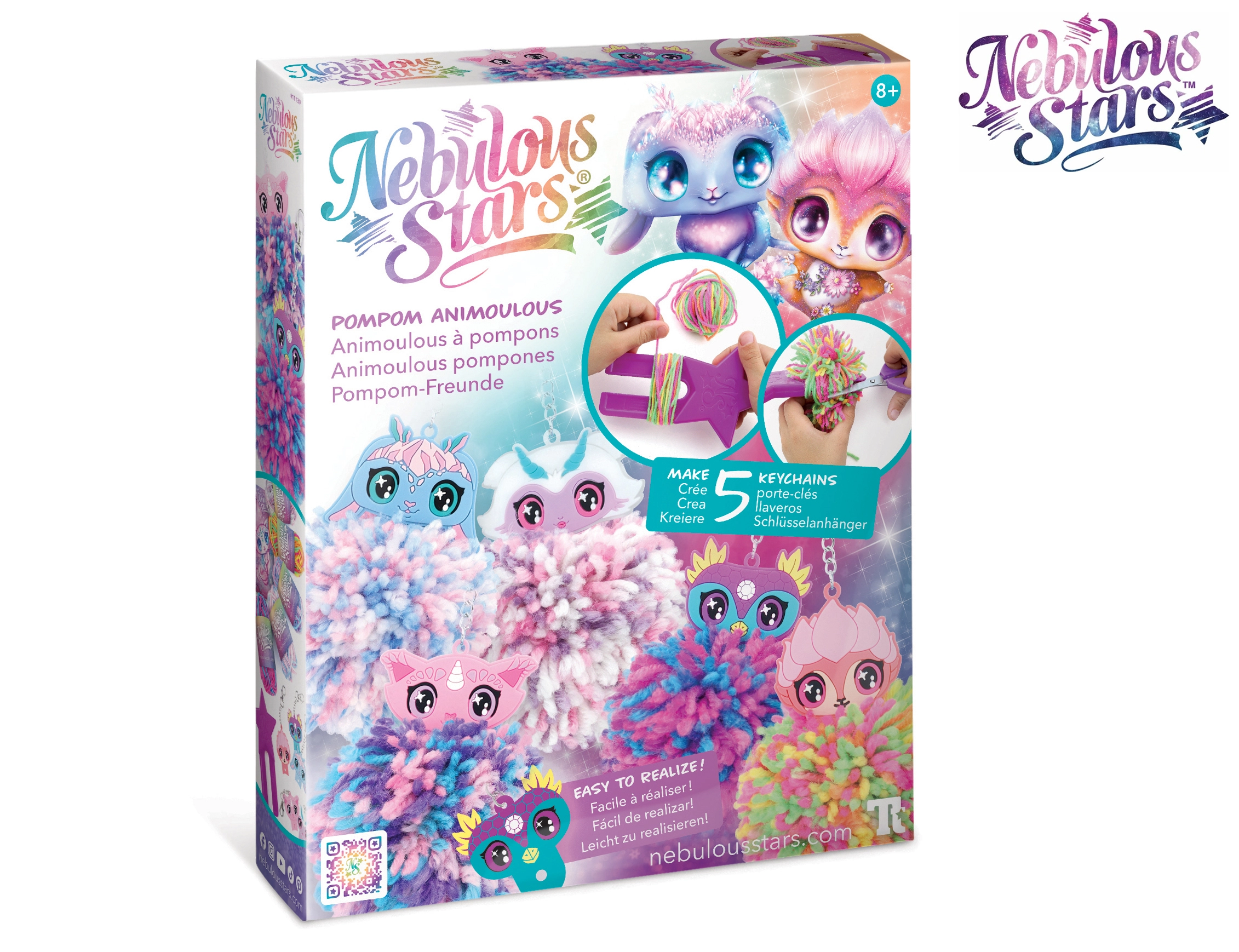 Das Paket enthält bunte Acrylgarne, 5 niedliche Halter mit Animousch und eine Tiergeschichte, die dem Basteln eine magische Atmosphäre verleiht. Das Ergebnis sind weiche, mehrfarbige Pompons mit Metallclip für einfaches Befestigen.