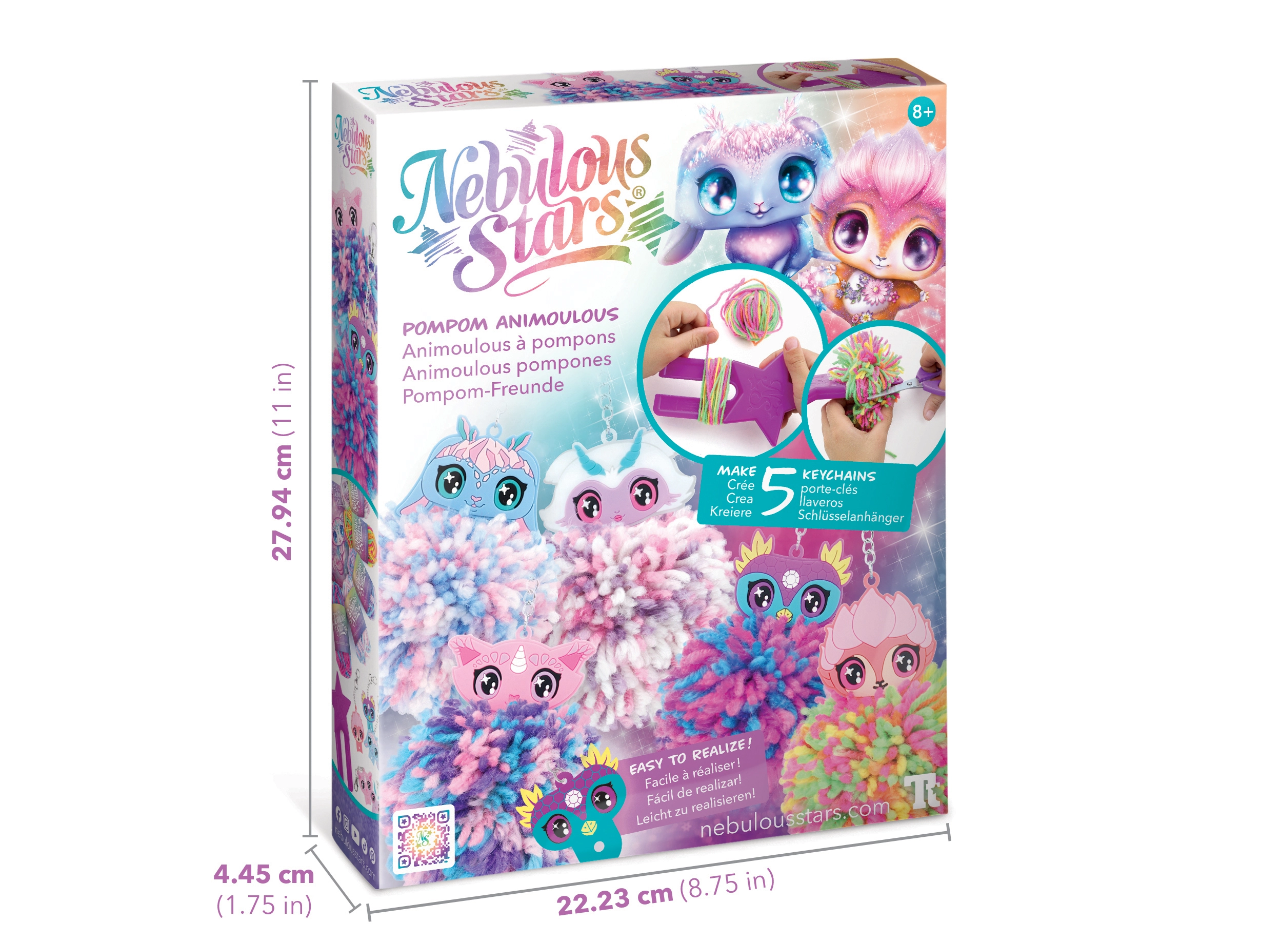 Mit diesem Kreativset stellen Kinder ganz leicht weiche Pompons her und verwandeln sie in individuelle Anhänger für Schlüssel oder den Rucksack. Dank des praktischen Werkzeugs und klarer Anweisungen ist das Basteln einfach, unterhaltsam und sicher.