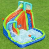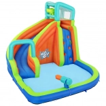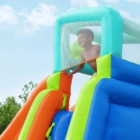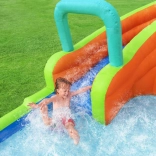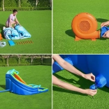 Der Bestway H2O GO! Wasserpark ist eine All-in-one-Attraktion für aktiven Wasserspaß im Garten. Die robuste Rutsche mit oberer Plattform, die durch ein Netz gesichert ist, führt in einen geräumigen Pool, während ein integrierter Sprühnebel und ein überraschender kippbarer Wasserkübel Rutsche und Kinder angenehm nass halten. Dank des Schnellaufblasens mit dem leistungsstarken Gebläse ist der Park in weniger als 2 Minuten einsatzbereit.