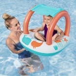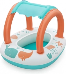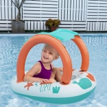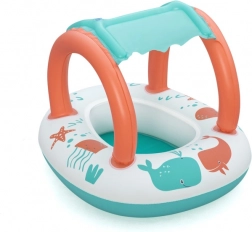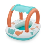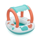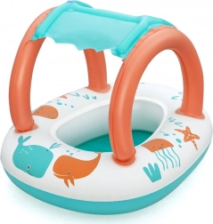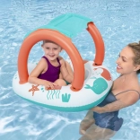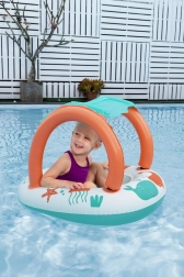 Leichtes und bequemes Boot für die Kleinsten, das fröhliche Meeresgrafiken mit einer praktischen Überdachung mit UV-Schutz kombiniert. Der abnehmbare Sonnenschutz wird mit Klettverschluss befestigt, sodass Sie ihn leicht an Wetter und Sonnenintensität anpassen können. Dank des geschlossenen Sitzbereichs mit Beinöffnungen genießen Kinder stabilen und sicheren Badespaß.