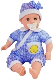 Gekleidet in einem blauen Pyjama mit weißen Details, das leicht abnehmbar und waschbar ist, bleibt die Puppe immer sauber. Zum Set gehören auch eine Flasche und ein Schnuller für noch authentischere Pflege.