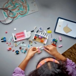 Dieses farbenfrohe, zweistöckige Set bringt Kindern unendliche Geschichten über Freundschaft und Mode in der Welt von LEGO Friends. Im Obergeschoss befindet sich ein voll ausgestatteter Friseursalon, in dem die Figuren mit Hilfe des Friseurs Faraji neue Frisuren ausprobieren – von Perücken bis hin zum Föhnen und Bürsten.