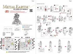 Der Bausatz enthält 2 Stahlblechplatinen (21 × 11 cm) sowie eine ausführliche, illustrierte Anleitung. Die einzelnen Teile werden aus den Platinen herausgedrückt und mit umgebogenen Laschen in Schlitze eingerastet – ganz ohne Klebstoff. Für ein angenehmeres Arbeiten empfehlen wir einen kleinen Seitenschneider/Schere und eine feine Flachzange (nicht enthalten). Das fertige Modell misst ca. 9 × 4,5 × 3 cm und ist ab 14 Jahren geeignet.