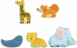 Die Holzunterlage sorgt dafür, dass jedes Tier an seinem Platz bleibt, was das Erfassen und die Handhabung verbessert. Jedes Teil kann auch als Spielstein dienen, wodurch das kreative Potenzial dieses Spielzeugs erhöht wird.
