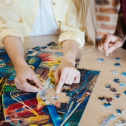 Einfache Handhabung des gesamten gepuzzelten Bildes ohne Risiko des Auseinanderfallens, dank der außergewöhnlichen Kartondicke.