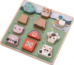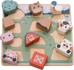 Dieses Holz-Steckpuzzle auf einer stabilen Grundplatte begeistert alle kleinen Tierfreunde. Beim Spielen lernen Kinder Formen und Farben zu erkennen, üben Geduld und logisches Denken und entwickeln dabei Feinmotorik sowie Hand-Auge-Koordination. Die Tiermotive lassen sich leicht in die Platte einsetzen und können auch einzeln im freien Spiel verwendet werden.