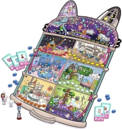 Packungsinhalt: Spielbrett in Form eines Katzenhauses, 2 Figuren mit Basen, Sanduhr, Hinweiskarten (56 Stk.), spezielle Hinweise (10 Stk.) und Anleitung.
