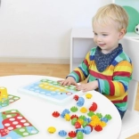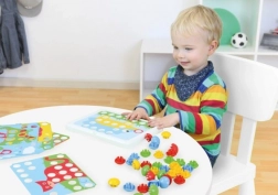 Dieses Mosaikspiel mit großen, glatten Steckknöpfen ist eine tolle Möglichkeit, Kinder spielerisch in ihrer Entwicklung zu unterstützen. Dank übersichtlicher Vorlagen und der gelochten Stecktafel lernen Kinder die Hand-Auge-Koordination, üben Geduld und entwickeln ihre Fantasie weiter. Die großen Teile liegen gut in der Hand und lassen sich sicher einsetzen.
