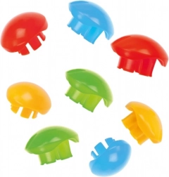 Glatte, robuste Teile mit 3,2 cm Durchmesser lassen sich leicht greifen und sicher in die Öffnungen stecken – ideal für die ersten Mosaike.