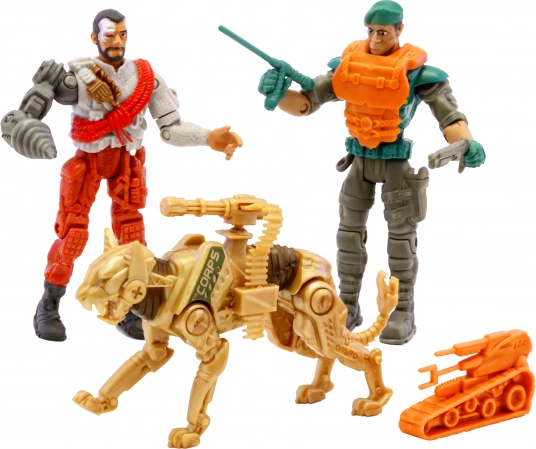 Die Corps-Soldaten sind die ideale Wahl für alle kleinen Liebhaber von Action-Spaß. Dieses Set enthält einen Soldaten mit einer Höhe von 10 cm und ein Tier, die zusammen ein dynamisches Team bilden.
