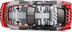 Sportliches Livery, großer Heckflügel und aerodynamische Linien verweisen authentisch auf den Rennwagen AUDI S1 e-tron quattro.