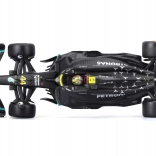 Originalgetreue Sponsorenaufkleber, präzise Proportionen und das ikonische schwarz-türkise W14-Farbschema verleihen dem Modell Sammlerwert.
